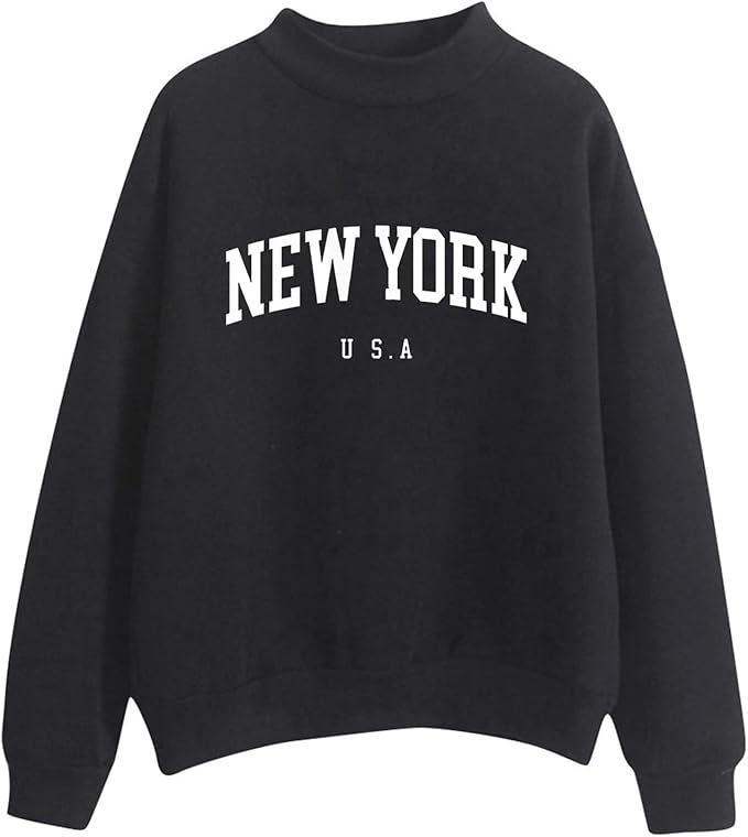 Black Hoodie Women's Autumn Winter O Neck Solid Colour Prints Long Sleeve Pullover Sweatshirt Hoodie Black