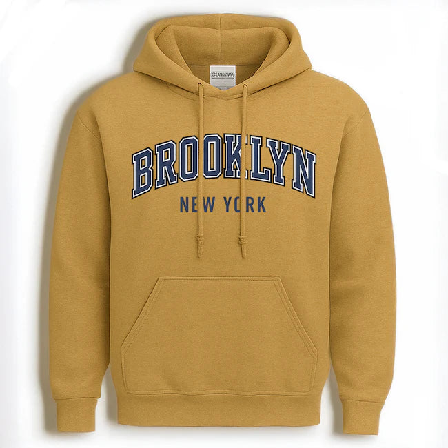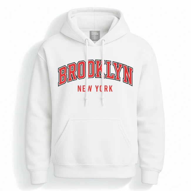 Classic Brooklyn New York Hoodie (5 Colorways) Capture the essence of New York's most iconic borough with this varsity-inspired hoodie. Featuring a bold collegiate arch and striking tri-color print, it delivers authentic Brooklyn attitude with refined craftsmanship. The clean, structured fit balances streetwear edge with timeless appeal, making it a versatile staple for those who appreciate urban culture and design heritage. Available in five distinct colorways to match your personal style.