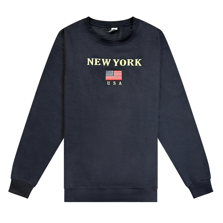 A best seller new york sweatshirt with a Patriotic New York theme in Gray with Navy Blue Lettering. This sweatshirt is a full cotton/Polyester mix in a crewneck style. Shop the best collection of new york sweatshirts and new york hoodies for yourself or make it a great gift for family and friends alike!