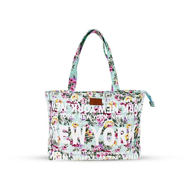Carry iconic New York style with this sophisticated floral monogram canvas tote. Featuring a classic "NY" design adorned with delicate floral accents, this 17x13-inch bag blends timeless elegance with urban flair. Crafted from durable canvas, it's spacious enough for daily essentials while maintaining a refined aesthetic. Perfect for the New York enthusiast or anyone seeking a versatile handbag that makes a subtle statement. An essential accessory that transitions seamlessly from work to weekend.
